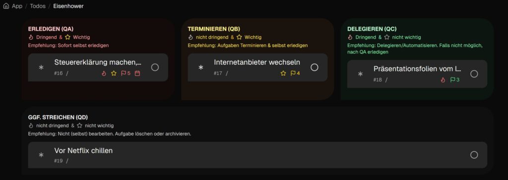 Die Eisenhower-Matrix sortiert deine Aufgaben in vier einfache Kategorien: